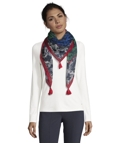 Шейный платок абсолютно необходим в женском гардеробе! Модный змеиный принт, декор стразами придает нотку гламура. Легкий платок прекрасно подойдет к весенне-осеннему гардеробу.