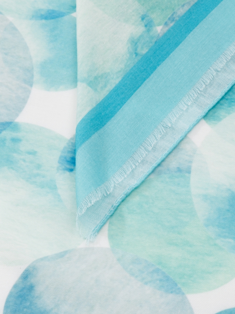 Состав: 70% хлопок, 30% шелк. Машинная подгибка, реснички. Размер: 70х180см.