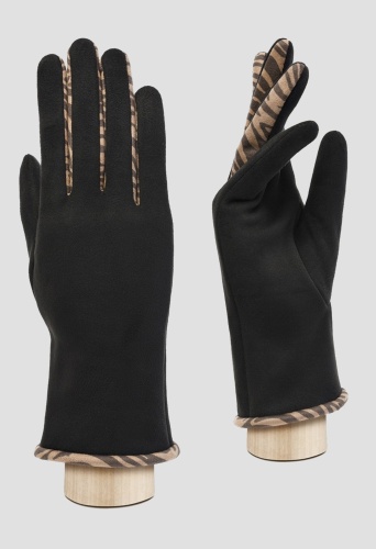 Модель выполнена с тонкой и теплой подкладкой из флиса. Отделка - контрастные вставки между пальцами и по краю манжеты с анималистичным принтом. Длина манжеты от нижней точки большого пальца до края перчатки - 6 см. Длина пальцев - средняя.