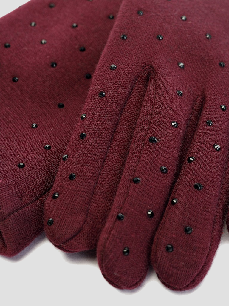 Модель выполнена с тонкой и теплой подкладкой из флиса. Отделка - лицевая сторона украшена россыпью страз черного цвета. Длина манжеты от нижней точки большого пальца до края перчатки - 6 см. Длина пальцев - средняя.