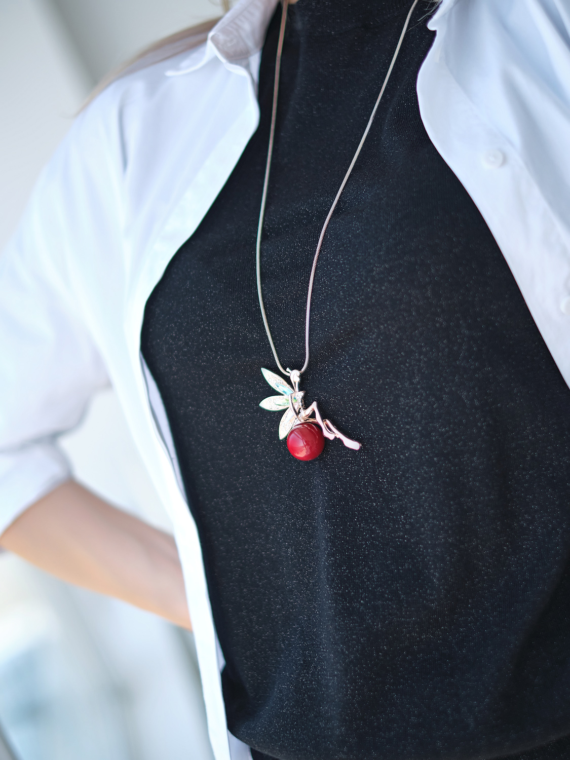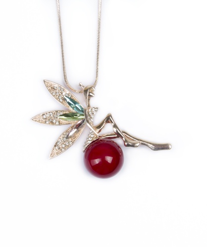 Украшение-подвеска в форме феи подчеркнет нежность и изящество образа. Изделие выполнено из комбинированных материалов с использованием искусственного жемчуга.