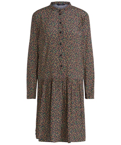 Романтичное платье свободного силуэта с заниженной талией. Длина до середины колена, втачной рукав полной дины, воротник стойка, планка с пуговицами. Можно составить великолепный трендовый образ с грубыми ботинками.