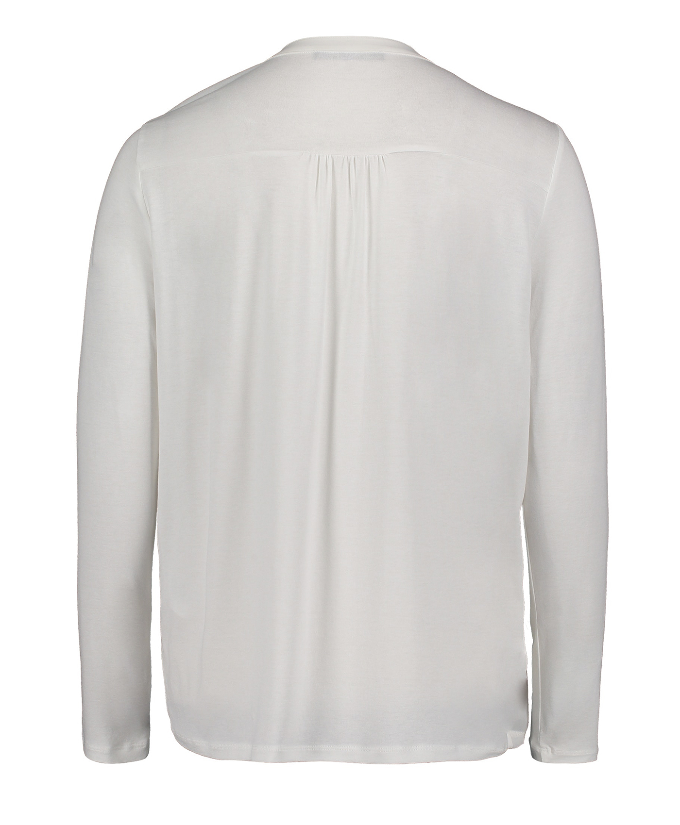 Белая блуза - необходимый элемент базового гардероба. Прямой покрой, V-образный вырез горловины, длинные рукава. Материал из вискозной смеси приятен к телу и обеспечивает комфорт. Эта простая элегантная модель является отличным компаньоном как для брюк, так и для юбки.