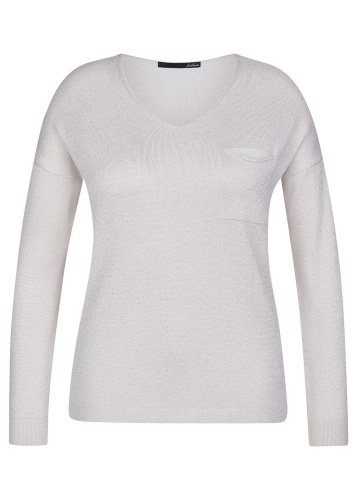 Джемпер полуприлегающего силуэта. Длинные рукава реглан, V-образный вырез. Кармашек на груди.