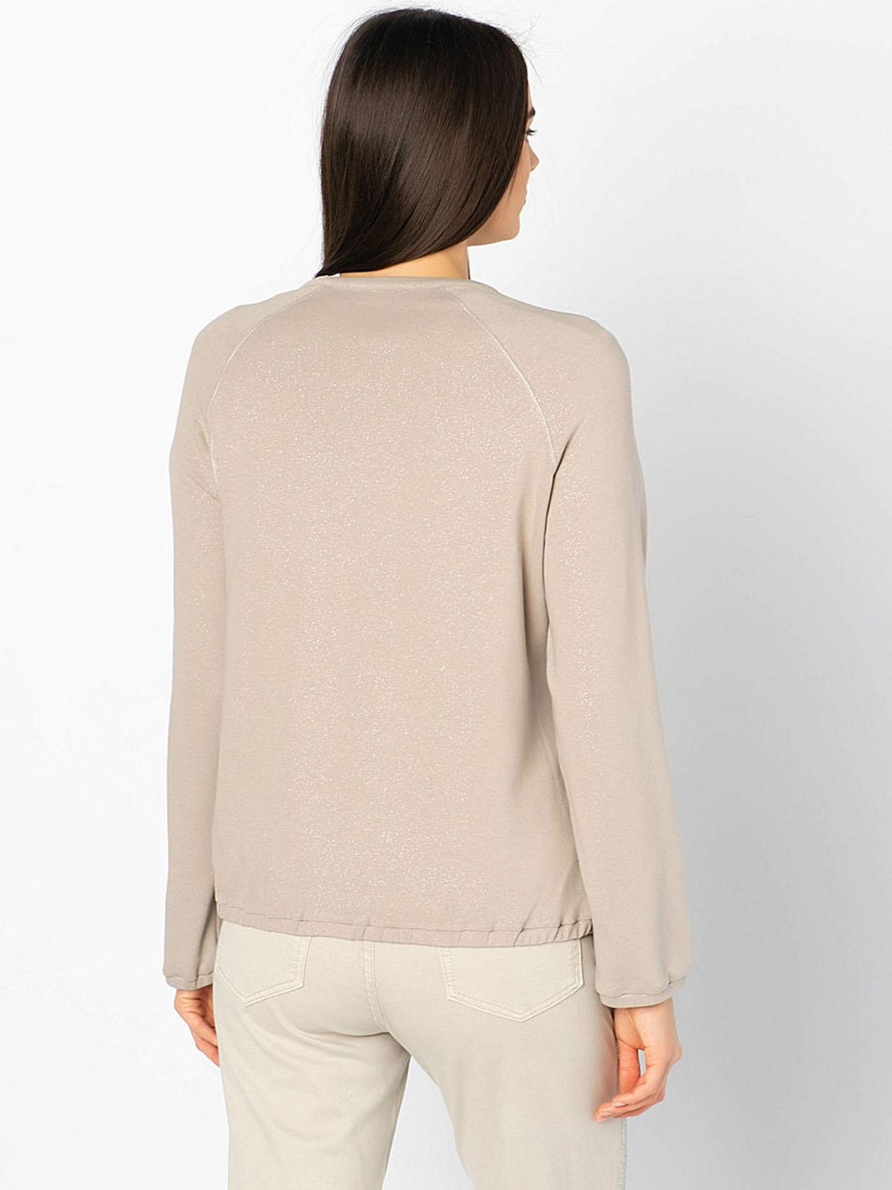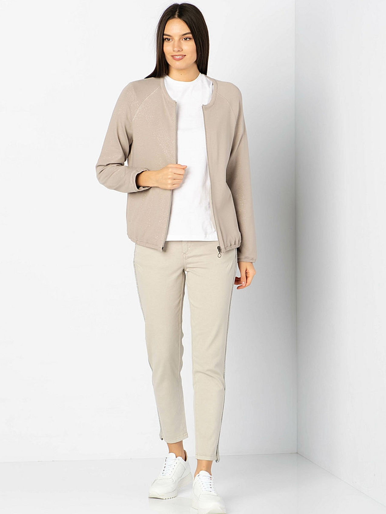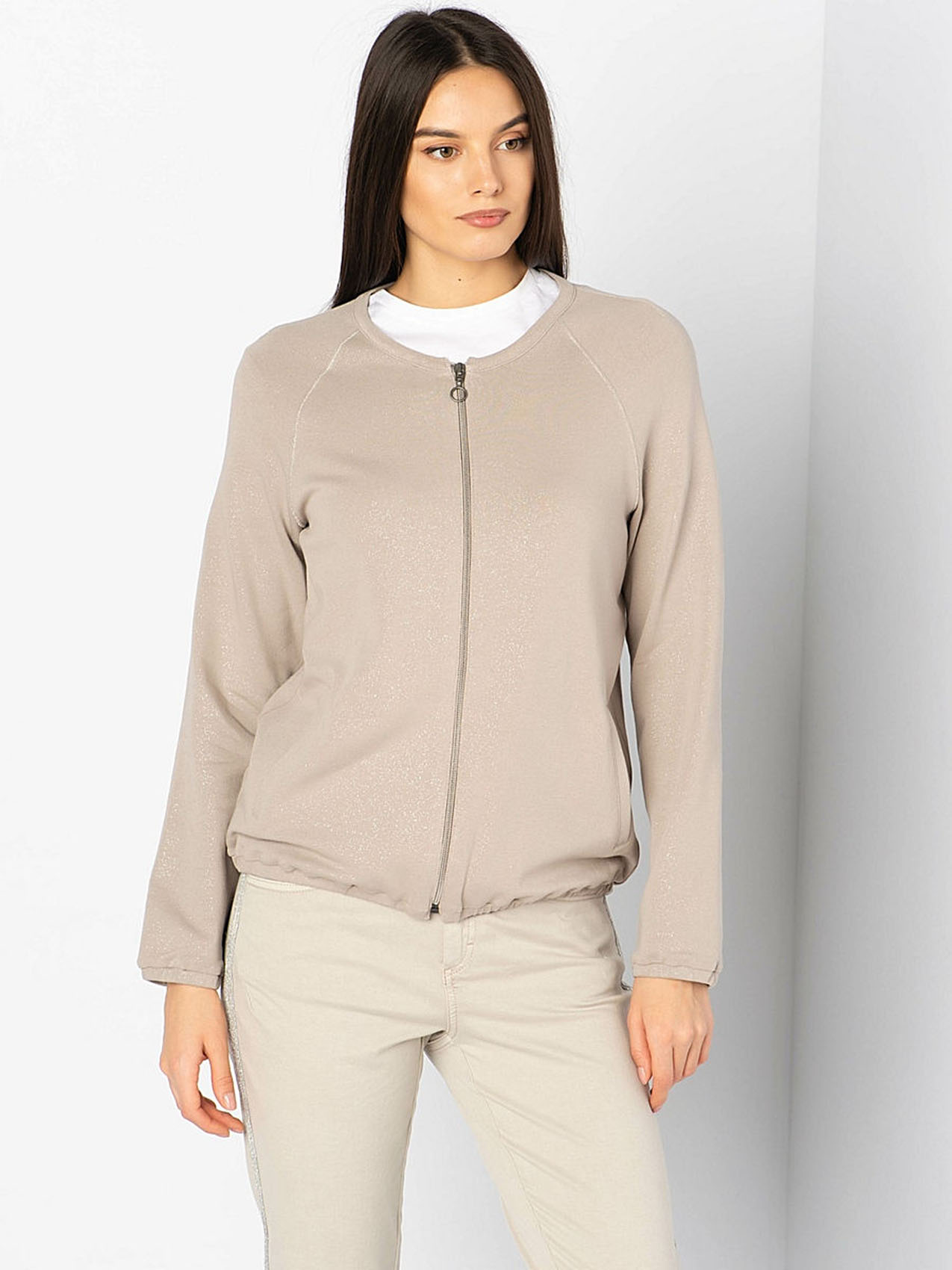 • слегка приталенный силуэт • круглый вырез горловины • длинные рукава реглан • застежка-молния • прорезные карманы • приятный хлопковый материал с примесью эластана • длина изделия по спинке: 65 см.