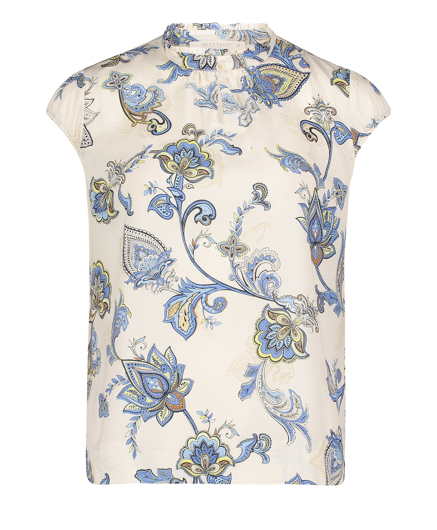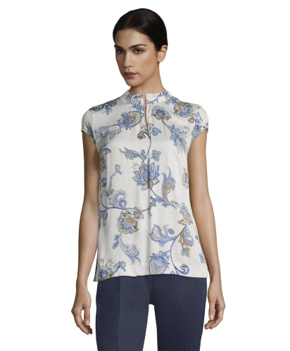 Блуза с цветочным принтом - дизайн на все времена! Прямой покрой, воротник-стойка в китайском стиле, короткие рукава. Вискозный материал приятен к телу и обеспечивает максимальный комфорт. Эта блуза прекрасно смотрится как в брючном, так и в юбочном комплекте.