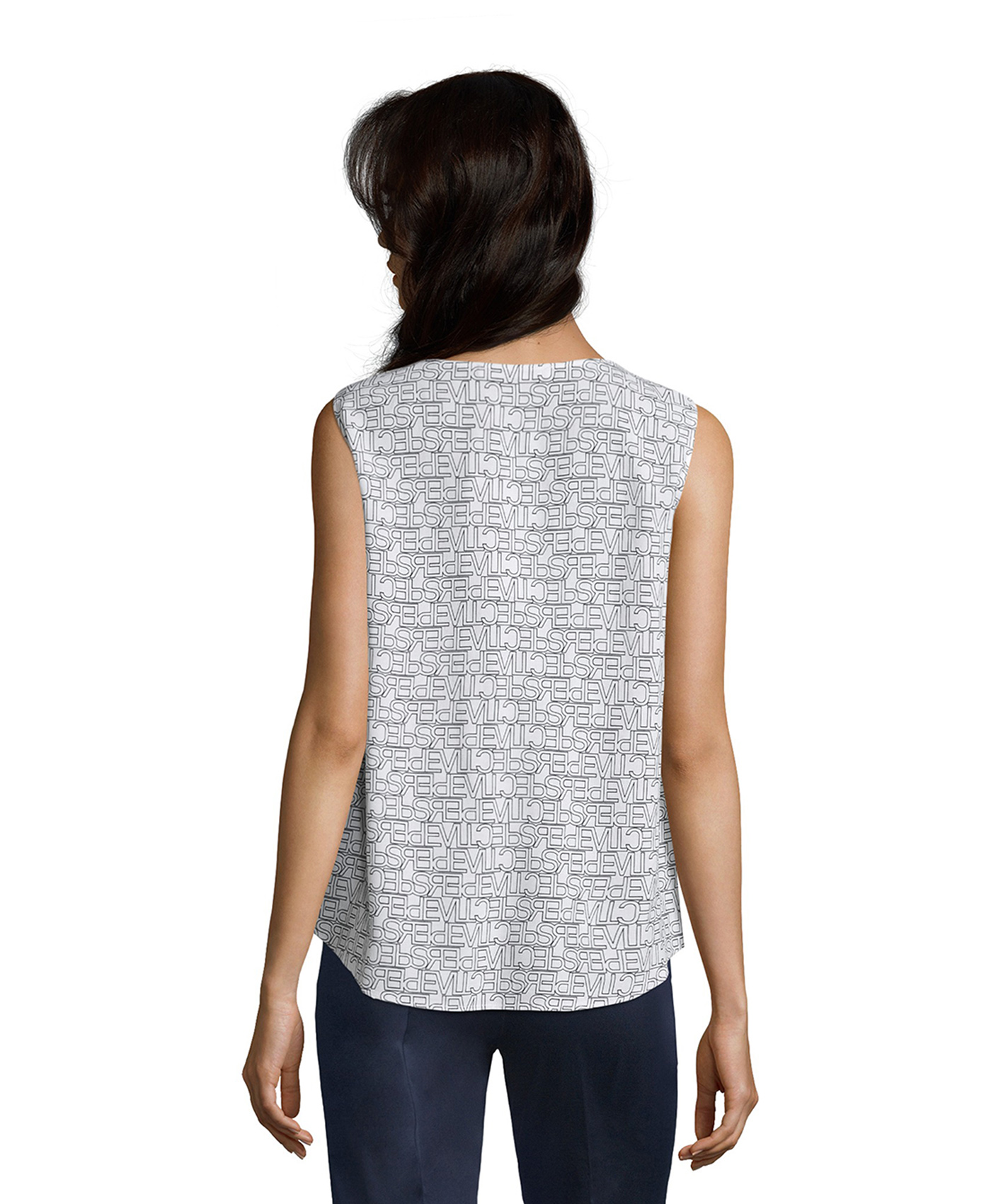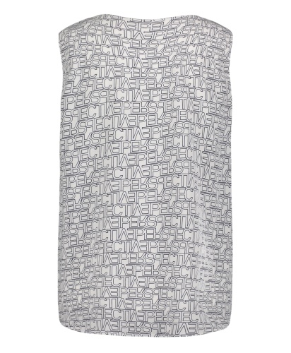 Свободный покрой - тренд сезона! Сплошной принт с надписью создает вау-эффект. Приятный к телу материал из смеси вискозы, тенсела и льна обеспечивает комфорт в ношении. Этот абсолютно стильный топ отлично сочетается с любым вариантом низа.