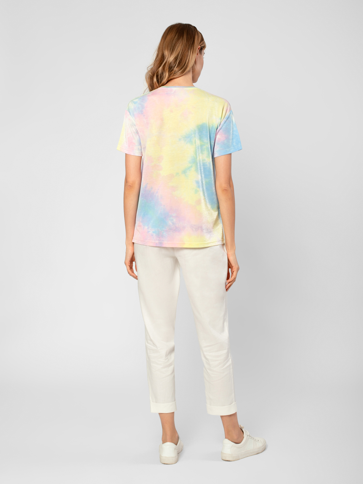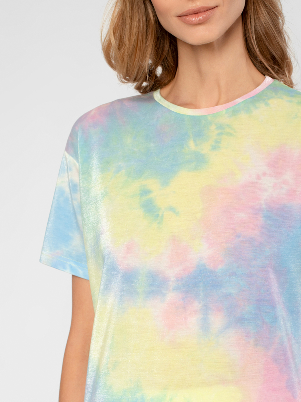 Футболка из хлопкового трикотажа прямого силуэта с круглой горловиной и коротким втачным рукавом.