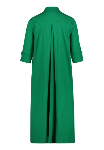 Трендовая модель - платье-рубашка! Платье миди силуэта трапеция. Рубашечный вороник, застежка на пуговицы спереди, рукава 1/2 на манжетах, кокетка на спинке, декоративная складка. Приятный к телу материал из хлопковой смеси. Это платье обеспечивает создание стильного образа как с туфлями на каблуке, так и со спортивной обувью.