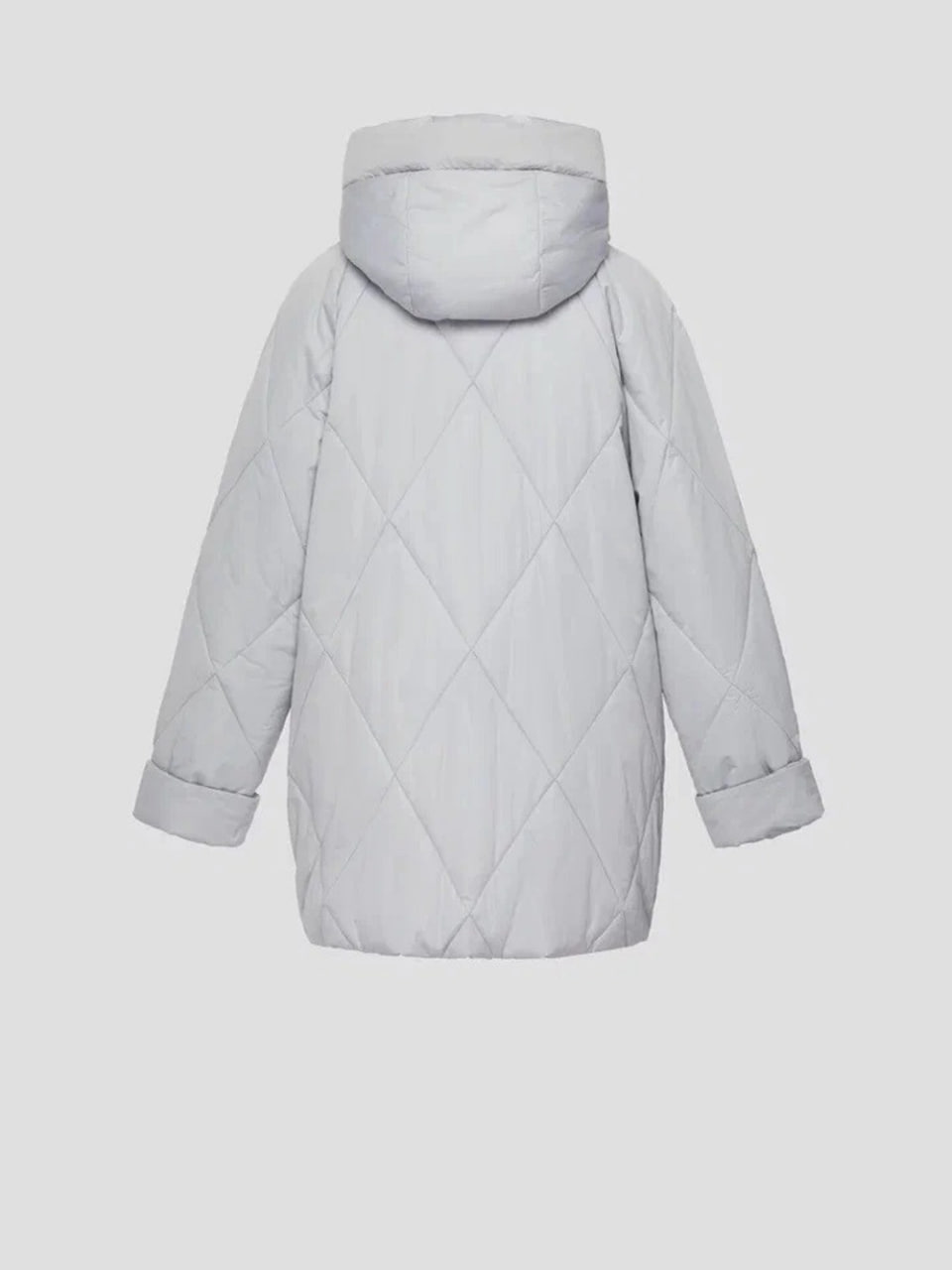 Светло-серая стеганая куртка. Регулируемые шнурки с металлическими наконечниками добавляют элемент стиля. Диагональные стеганые швы образуют изящный ромбовидный узор по всей поверхности изделия. Практичный дизайн и качественный материал делают куртку универсальной и комфортной для повседневной носки.