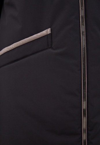 Темно-серое длинное пальто с капюшоном, застёгивающееся на молнию. Накладные карманы и декоративная светлая окантовка на них и капюшоне добавляют изделию особый шарм. Высококачественный материал обеспечивает комфорт и тепло, делая этот элемент гардероба идеальным выбором для холодной погоды.