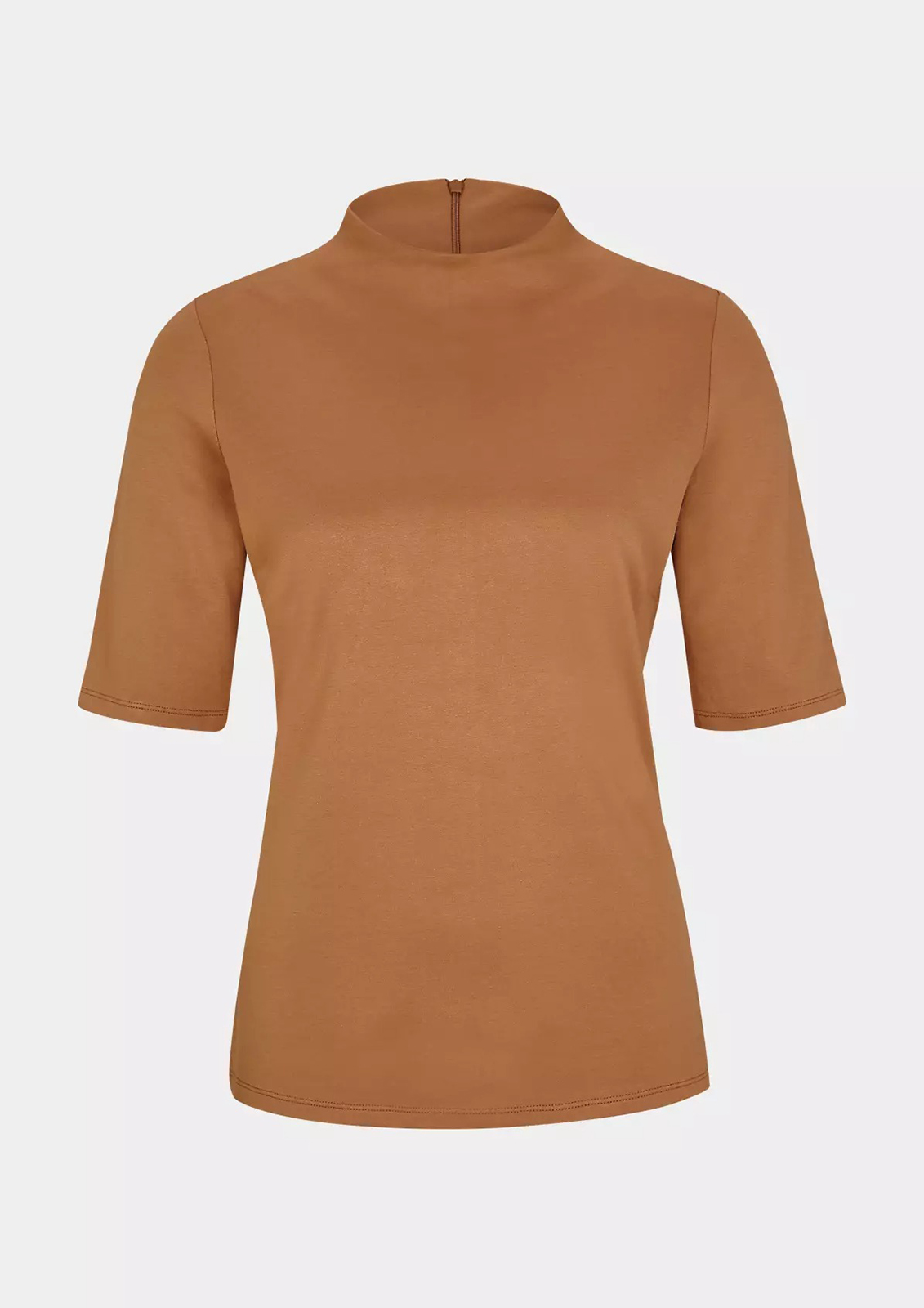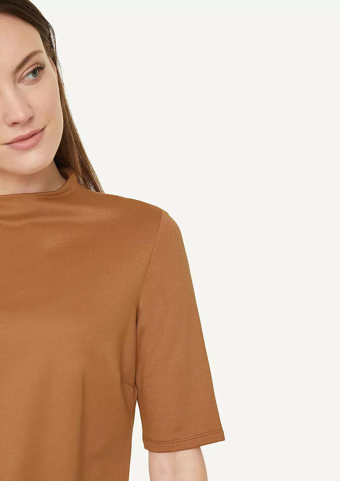 Однотонная блузка прямого кроя. Длина рукава до сгиба локтя, воротник стойка. Блуза может выступать самостоятельным верхом или надеваться под блейзер или жакет.
