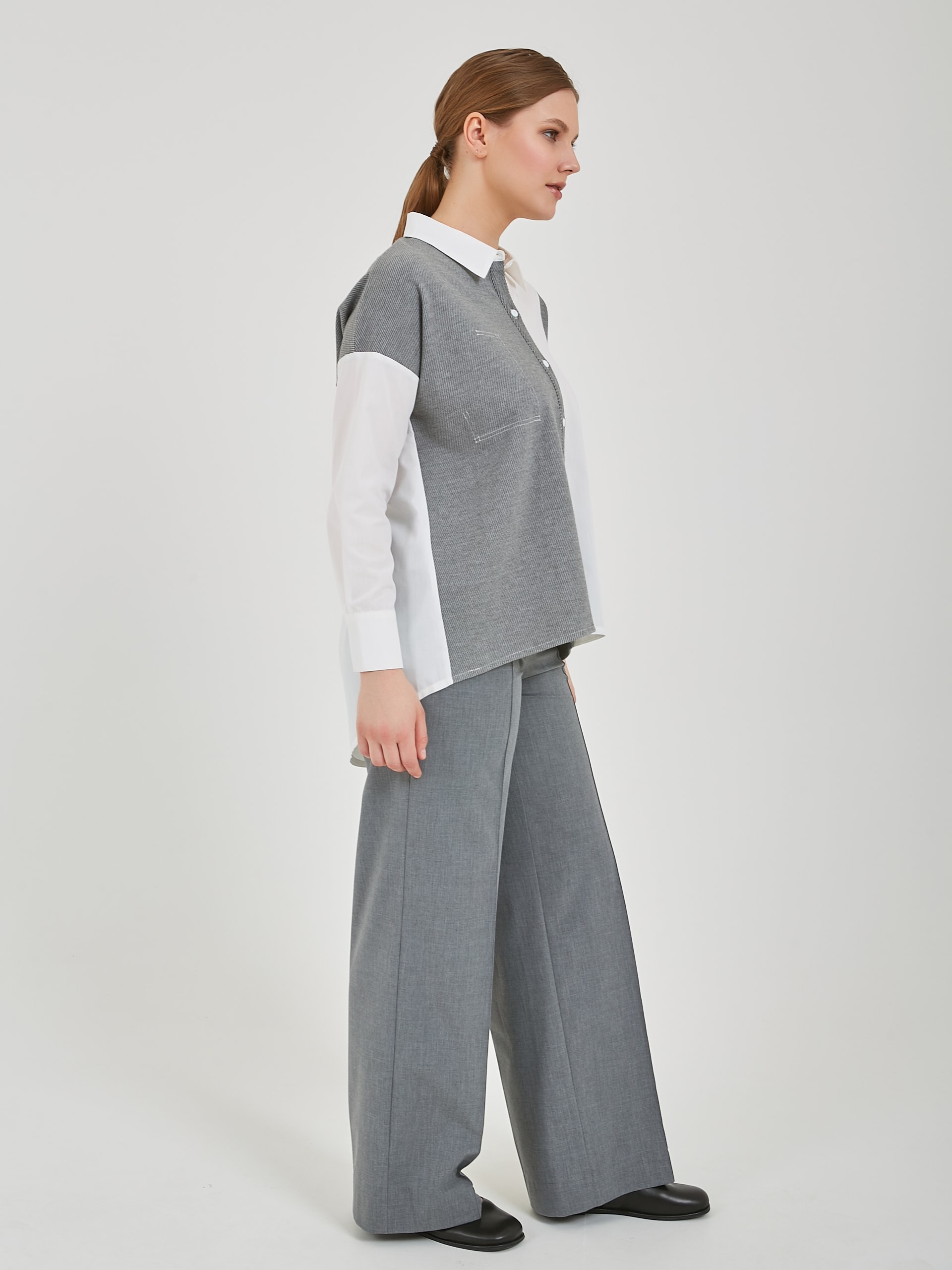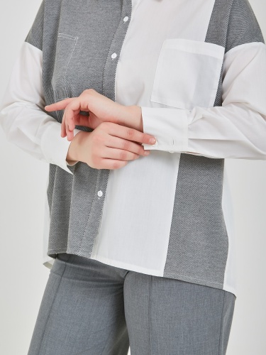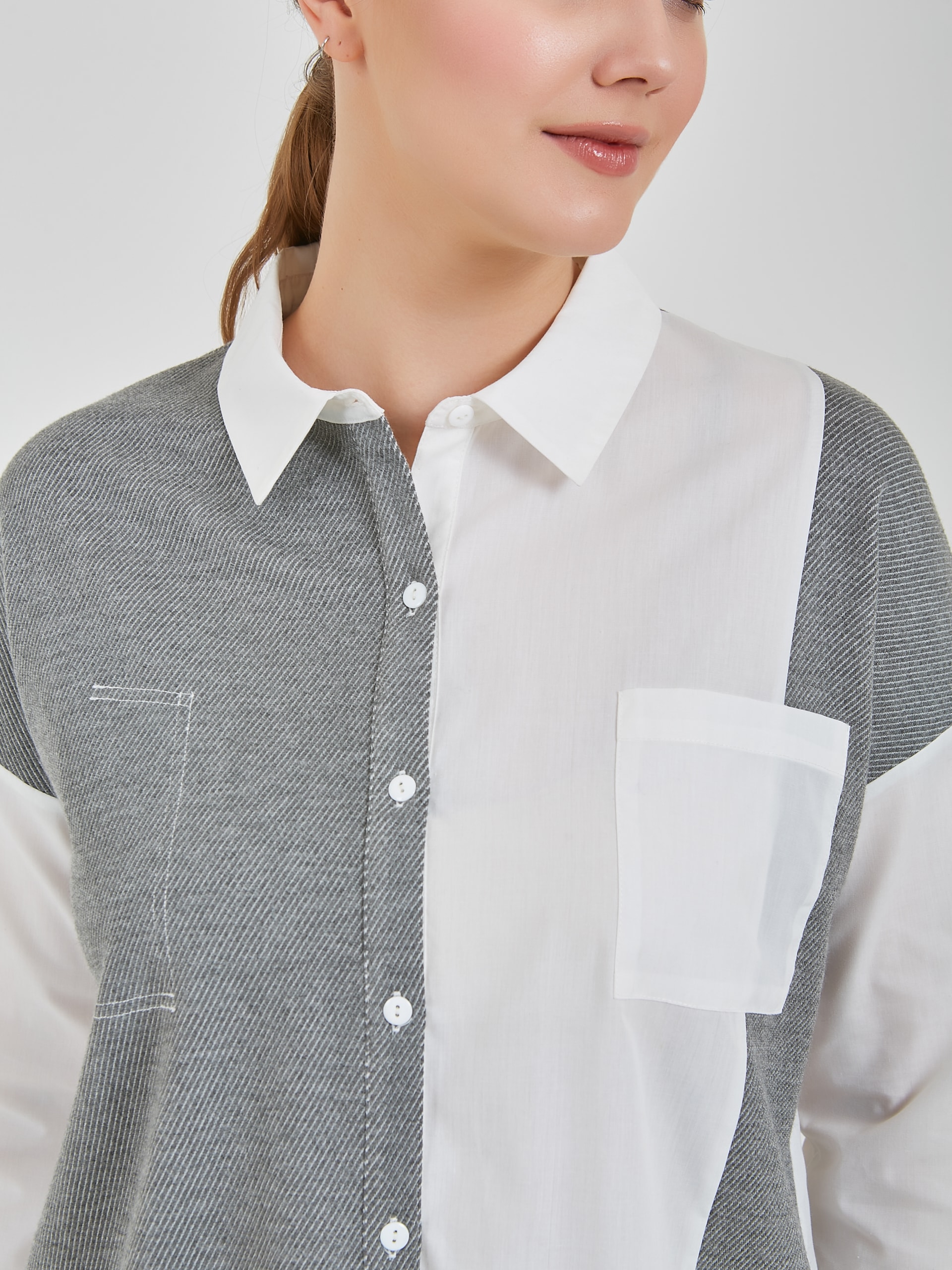 Оригинальная рубашка из комбинированной ткани, прямого силуэта с накладним карманом на груди. Осень-Зима'25/26. Капсула "Вишневый сад"