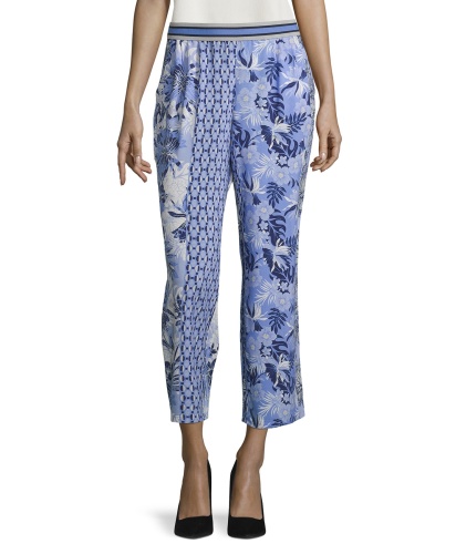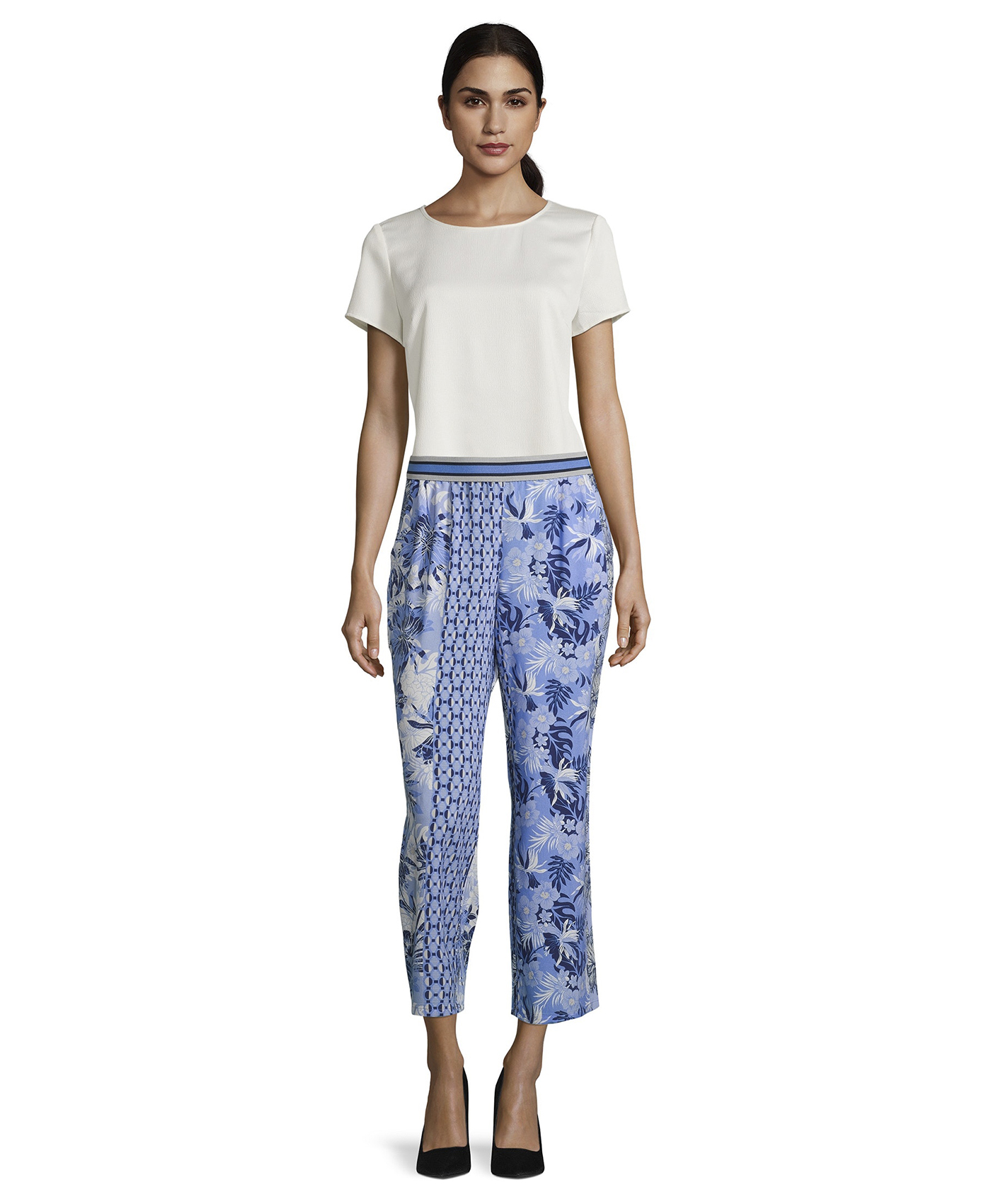 Широкие брюки в моде! Брюки средней посадки с эластиным поясом. Укороченная длина позволяет подчеркнуть модную обувь. Принт с сочетанием цветочных и графических мотивов обращает на себя внимание. Вискозный материал приятен к телу и обеспечивает максимальный комфорт. В сочетании с однотонной футболкой или блузкой эти брюки создают яркий современный образ.