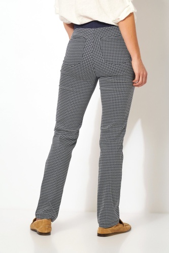 Брюки в мелкую клетку прямого кроя. Полная длина, комфортная высокая посадка. Эластичный пояс гарантирует удобство повседневного ношения. Милый акцент – сердечко-логотип у переднего кармана.