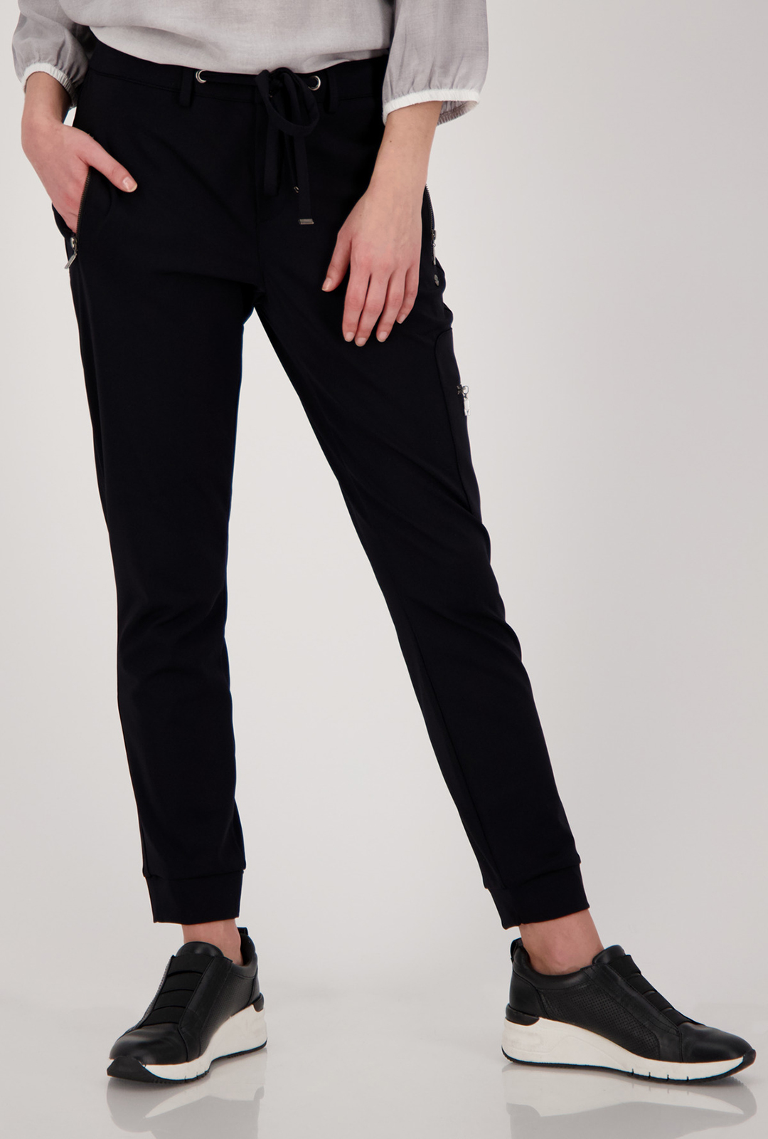На сайте указаны Российские размеры. Однотонные укороченные брюки в спортивном стиле подойдут для составления городского повседневного образа. Комфортная средняя посадка и пояс на кулиске обеспечивают удобство ношения. Прорезные боковые карманы на молнии, длина брюк 7/8.