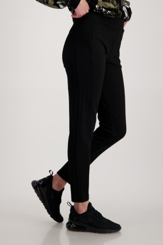 На сайте указаны российские размеры. Джеггинсы с карманами черного цвета из эластичной ткани с ребристым дизайном. Разделительные швы и карманы в боковых швах на молнии завершают модель. Рост модели 178 см Длина по внутреннему шву 72 см.