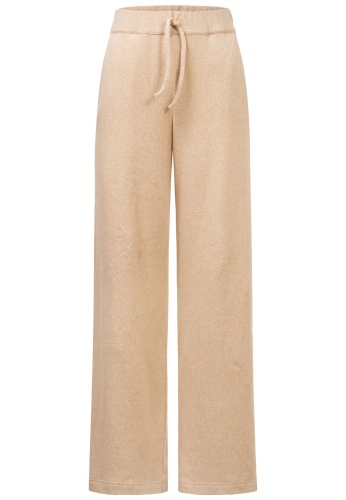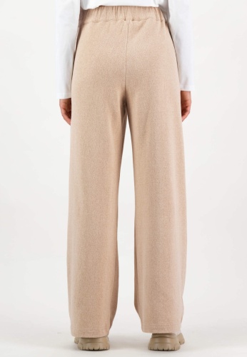 На сайте указаны российские размеры. Супермягкие брюки тонкой вязки с завязками. Спереди есть два практичных кармана, а завязки и широкий эластичный пояс обеспечивают удобство ношения. Благодаря прямому крою и незамысловатому однотонному цвету брюки универсальны, подчеркивая фигуру. Рост модели 177 см Измерения для 44 размера: Талия: 80 см Бедра: 106 см Длина штанины по внутренней стороне: 78 см.