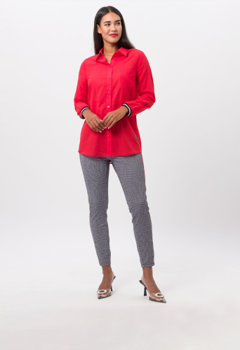 Брюки женские с контрастными полосками по бокам. Сочетание приятной эластичности, модного рисунка по всей поверхности, контрастных боковых полос, ламинированных карманов на молнии и контрастного эластичного пояса не оставит равнодушным ни одно модное сердце. Брюки этого классного дизайна незаменимы и станут изюминкой любого образа.