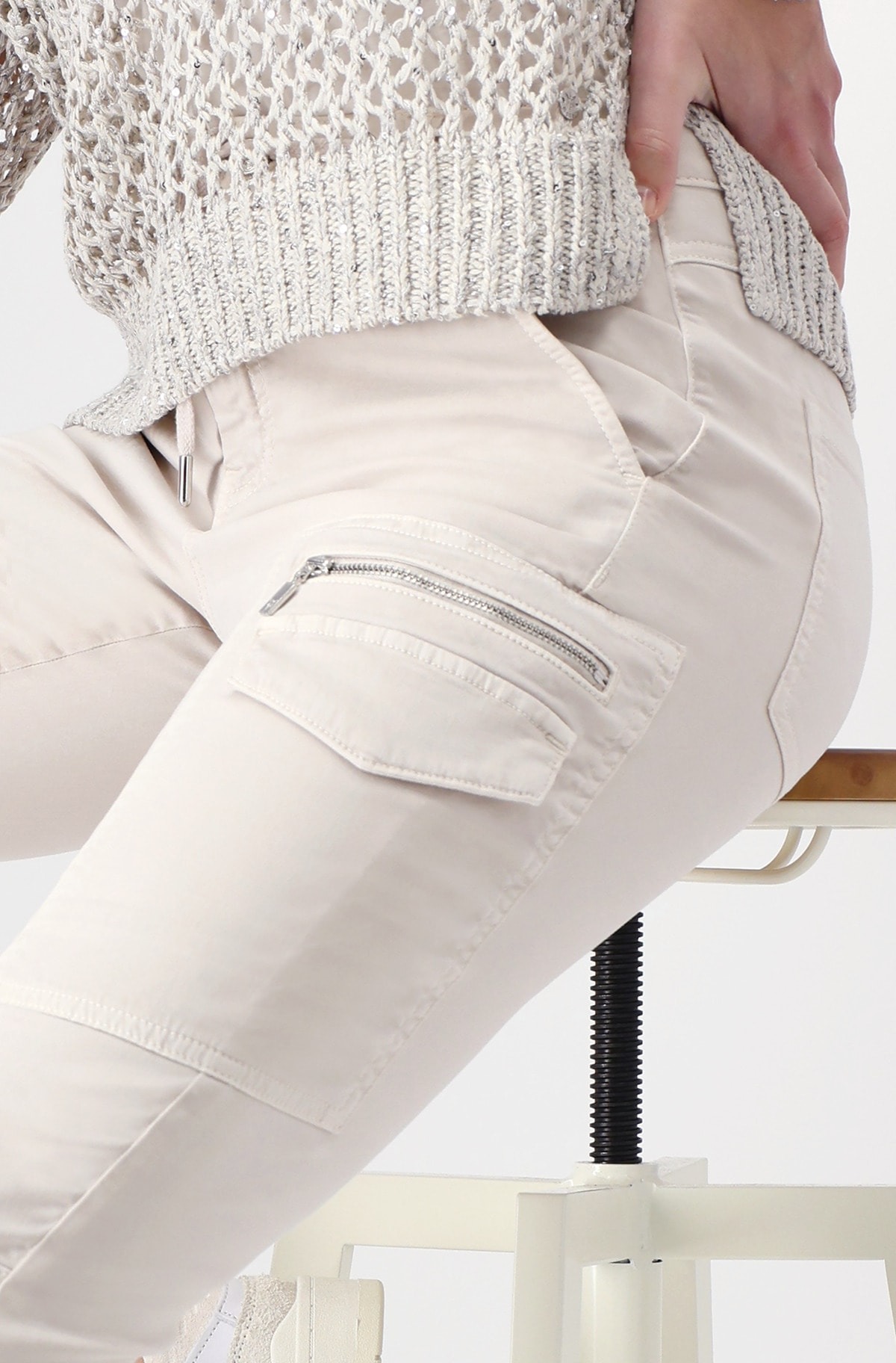 Стильные спортивные брюки из мягкой лиоцелльной ткани с пришитым карманом на молнии и ложным клапаном. Эластичный материал. Нормальная высота талии. Накладные задние карманы. Длина внутренней штанины для всех размеров 72 см.