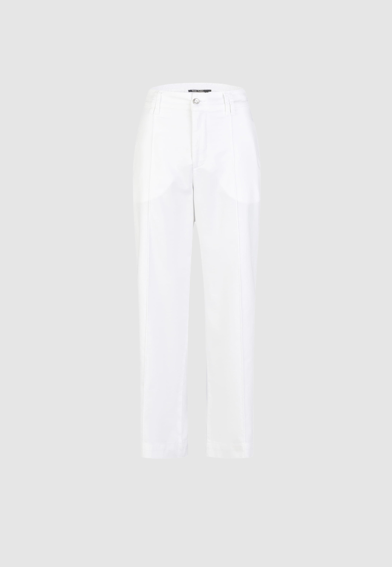 Укороченные брюки из легкого эластичного хлопка удобны в носке. Накладные ягодицы и карманы на крыльях особенно практичны. Прошитая окантовка добавляет дополнительные акценты.