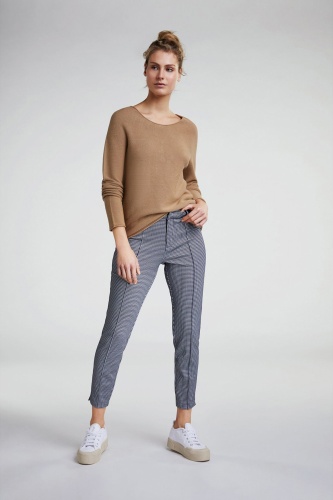 Прямые брюки средней посадки - совсем не скучная модель! Укороченная длина брюк позволяет продемонстрировать модную обувь. Стрелки делают образ более строгим. Классический клетчатый орнамент "гусиная лапка" является одним из современных трендов. В сочетании с лаконичным верхом эти брюки станут модным акцентом в вашем образе.