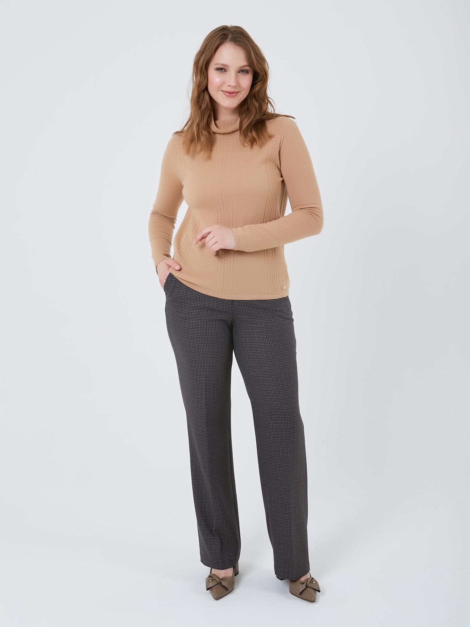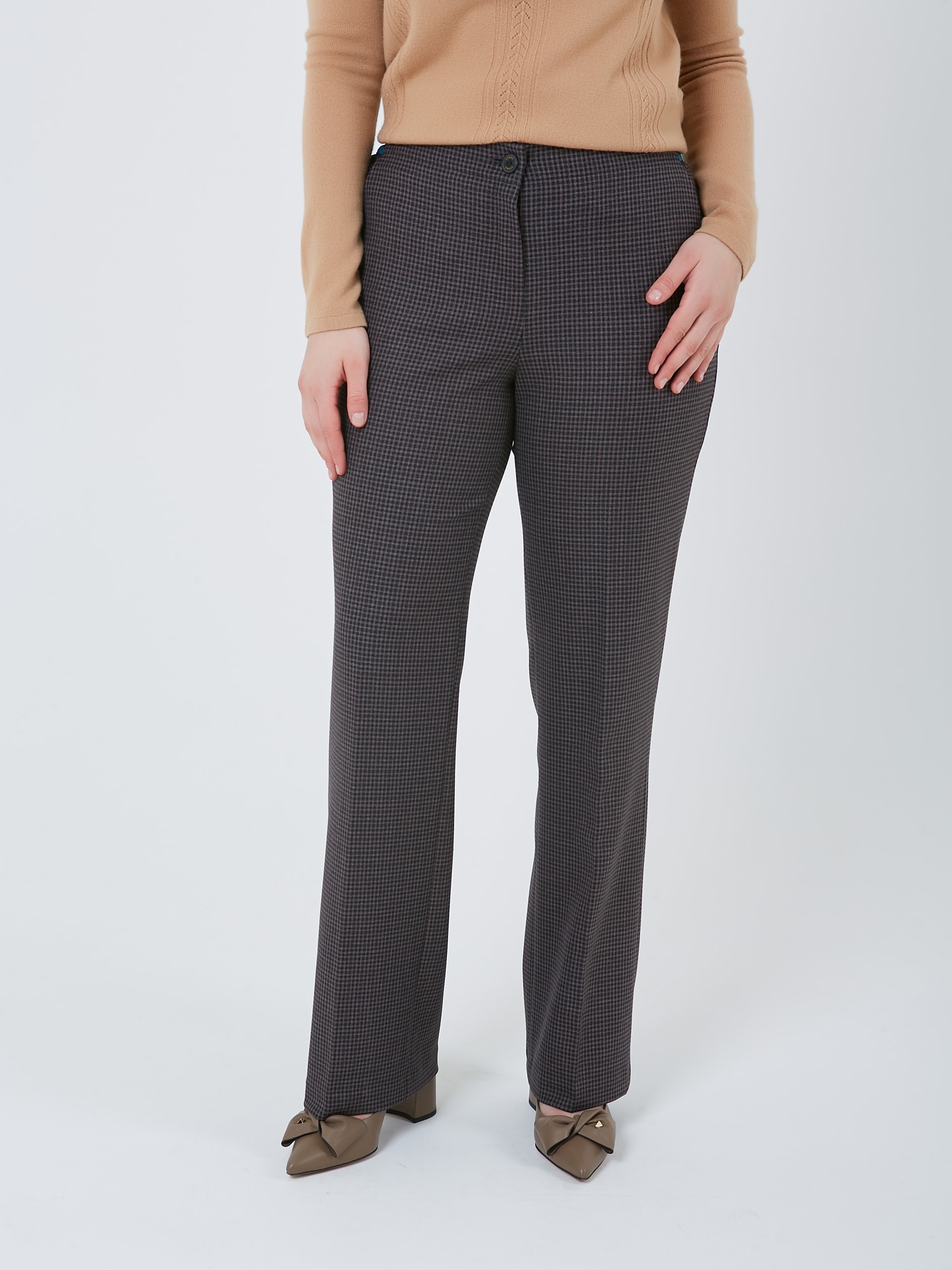 Классические брюки полной длины в деликатную клетку. Яркий акцент - резинка по задней части пояса. Коллекция Осень-Зима 2024-2025. Капсула "Крадущийся тигр, затаившийся дракон".