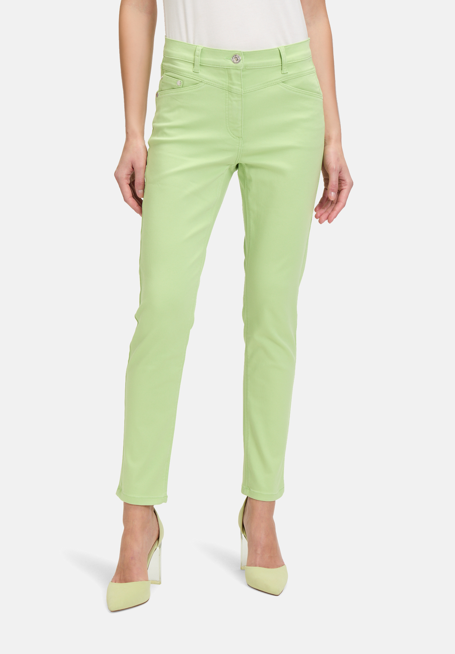 Идеальная модель для города и путешествий. Однотонные брюки длиной 7/8 от Betty Barclay с модным облегающим кроем идеально подходят для активного отдыха, обеспечивая максимальный комфорт и стильный вид. Укороченная длина добавит вашему образу нотку современности, а облегающий крой подчеркнет вашу фигуру.