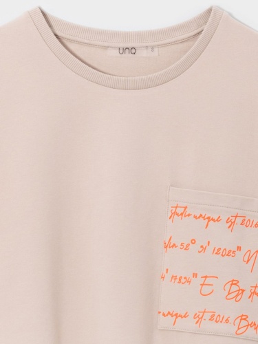 Пуловер из смесового хлопка свободного силуэта. Накладной принт на груди украшает яркий принт. Материал из 100%-го хлопка приятен к телу и комфортен в ношении. Втачной рукав. Круглый вырез горловины.