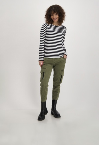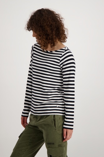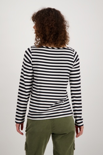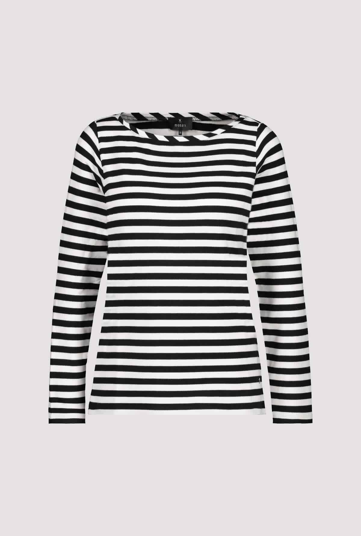 На сайте указаны российские размеры. Базовая полосатая рубашка с вырезом «лодочка». Сплошной полосатый узор здесь вступает в свои права и может использоваться повсеместно. Струящаяся вискоза в сочетании с модалом и стрейч обеспечивает удобную посадку. Модель ростом 174 см. Длина спины 44 размера составляет 60 см.