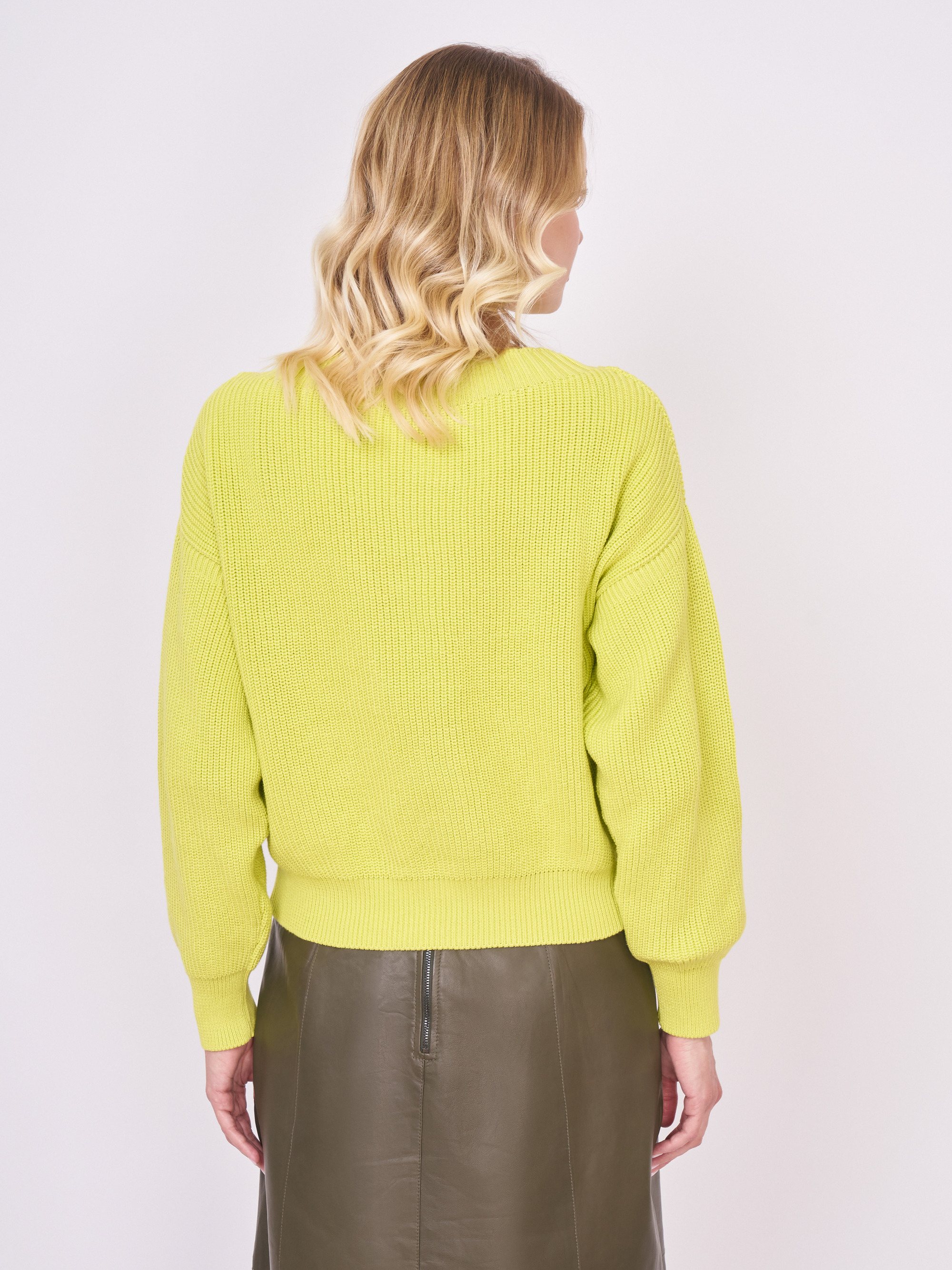 На сайте указаны российские размеры. Пуловер из органического хлопка с широким круглым вырезом идеально подходит для повседневной носки. Модная изюминка: модные вырезы на пышных рукавах. Базовый комбинируем с кожаной юбкой, лоферами и маленькой сумкой. Кстати, благоприятная для кожи хлопковая пряжа изготовлена из растений, не содержащих генной инженерии и пестицидов, в соответствии с идеей устойчивого развития. Длина по спинке: 48 см. Рост модели: 176 см.