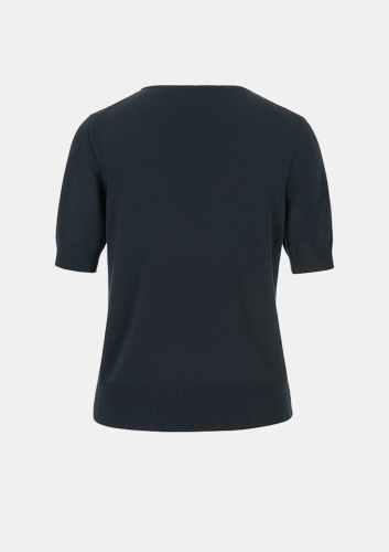 Классический джемпер с полурукавами, круглым вырезом и манжетами на рукавах незаменим в каждом гардеробе и особенно хорошо смотрится в этом оттенке.