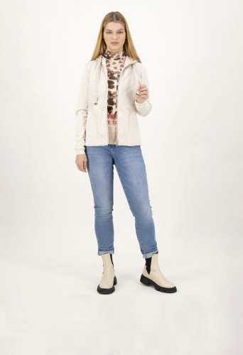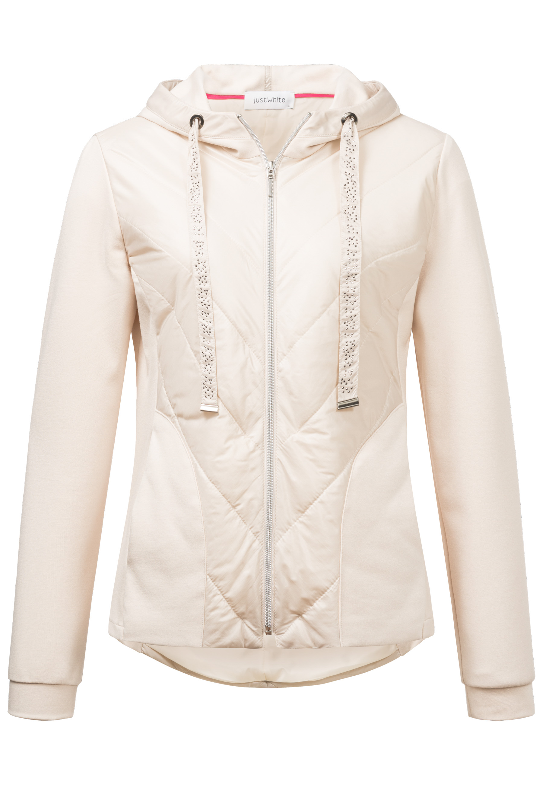 На сайте указаны российские размеры. Толстовка из смеси материалов привлекает внимание игривыми деталями, такими как атласная лента с блестящей отделкой вместо классического шнурка на капюшоне. Слегка блестящий вид стеганого материала искусно подобран на туннеле капюшона. С толстовкой каждый гардероб дополняется универсальным компаньоном на каждый день. Будь то центральная изюминка образа или завершение модного многослойного образа: возможности разнообразны. Наша модель ростом 177 см. Измерения для 44 размера: Окружность груди: 101 см Талия: 93 см Ширина бедер: 110 см Длина по спинке: 64 см Длина рукава: 62 см