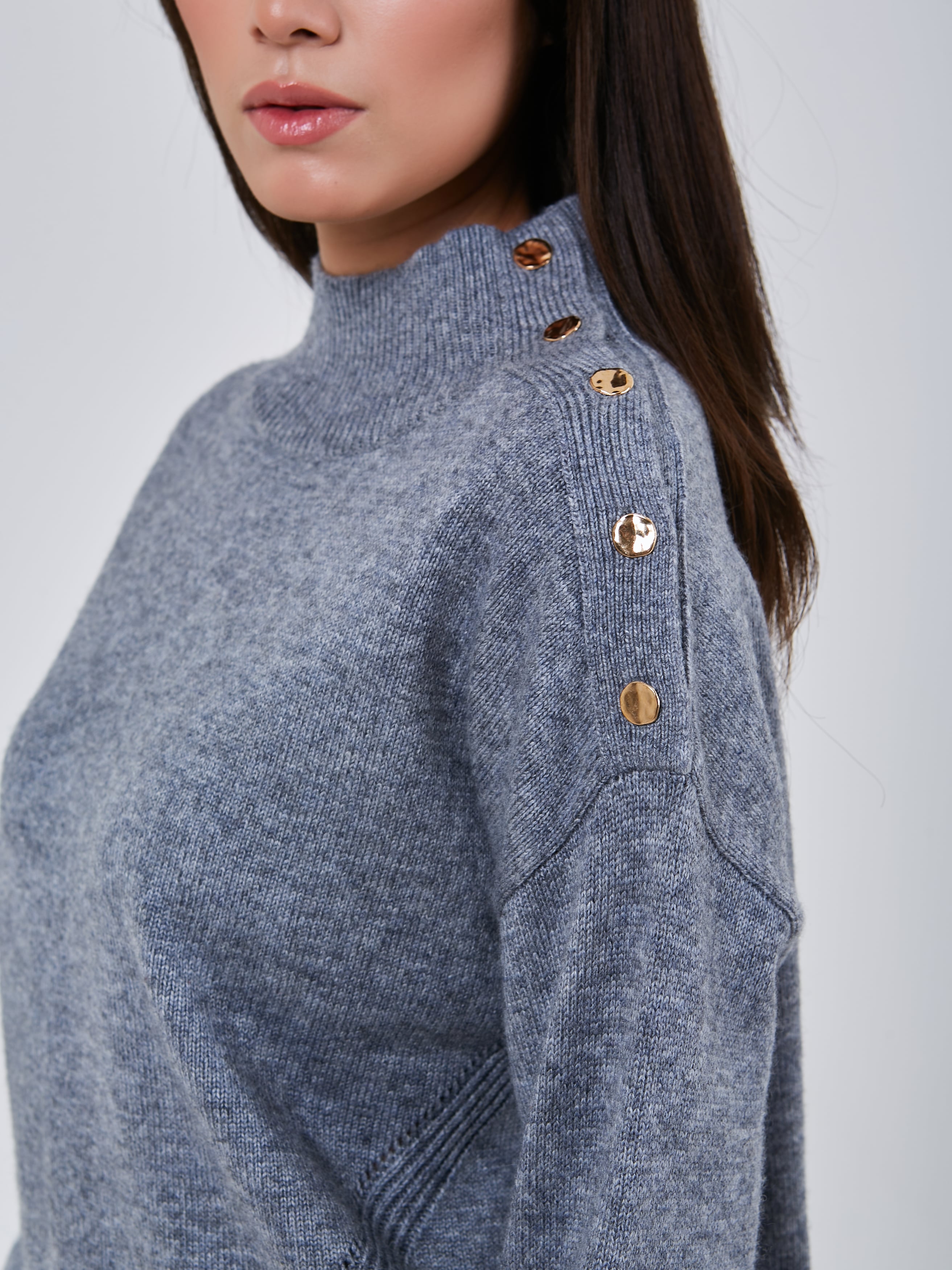 Интересный стильной джемпер с декоративными стальными пуговицами по плечевому шву. Осень-Зима'25/26. Капсула "Вишневый сад"