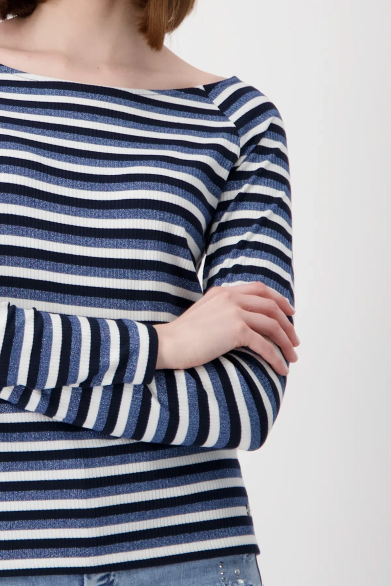 Пуловер MONARI с длинными рукавами, блестящим люрексом и модным полосатым узором.