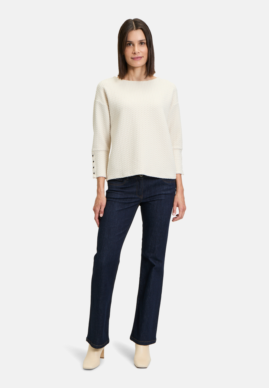 Толстовка с ее женственным и в то же время повседневным дизайном может быстро стать вашей новой любимой вещью. Свободный крой и вырез-лодочка придают изделию современный вид, а рукава 3/4 со спущенными рукавами создают непринужденный образ. Идеально подходит для создания повседневного, но стильного образа