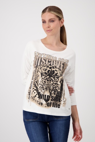 Эластичная рубашка из струящейся смесовой вискозы обеспечивает комфорт и износостойкость. Спереди украшает крупный леопардовый принт со стразами и блестящими надписями. Длина 44 размера 64 см.