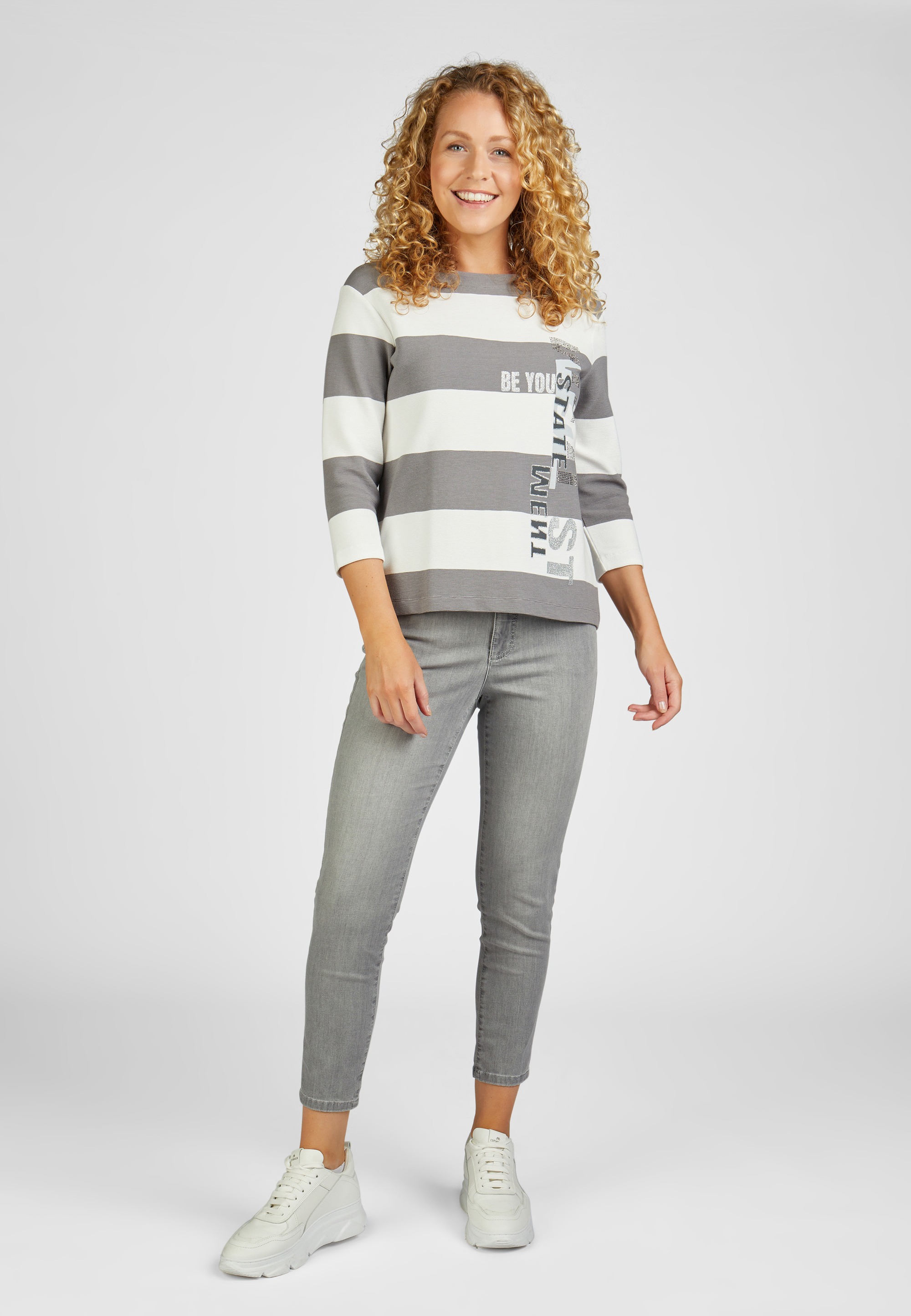Толстовка с модными рукавами 3/4 украшена блестящими деталями, которые придают вашему образу особую индивидуальность. Длина спинки от плеча для 44 размера: 62 см.