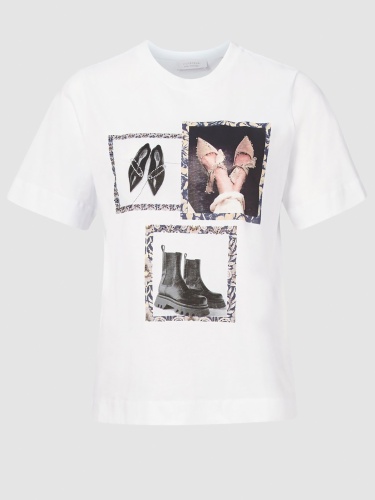 Белая футболка из 100% хлопка с оригинальным принтом в стиле fashion. Прямой крой универсален и подходит для любого типа фигуры. Втачной короткий рукав.