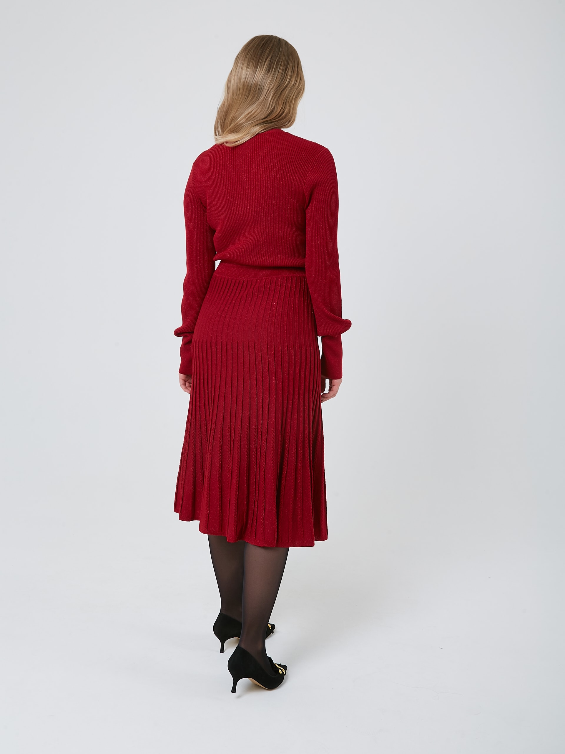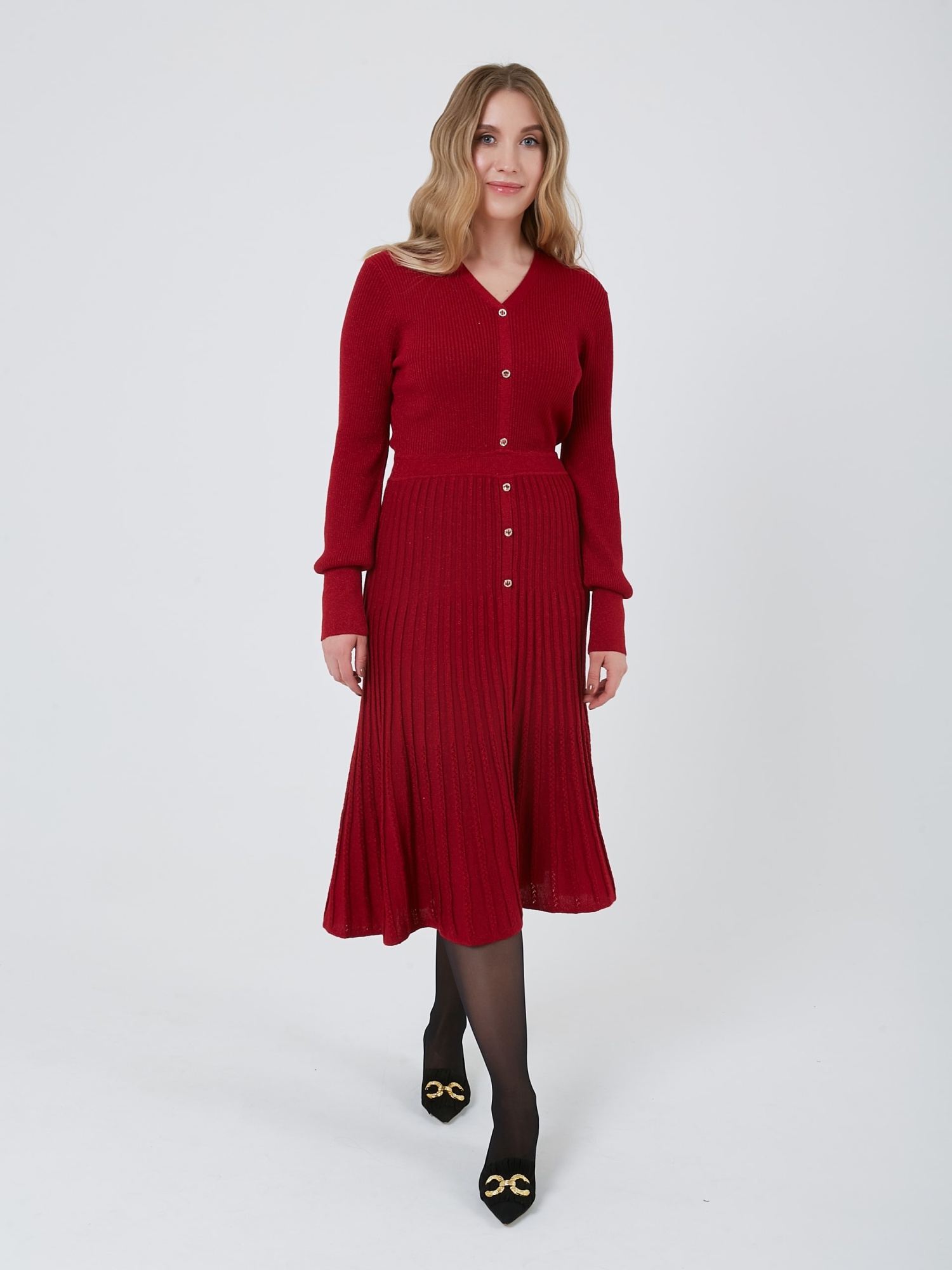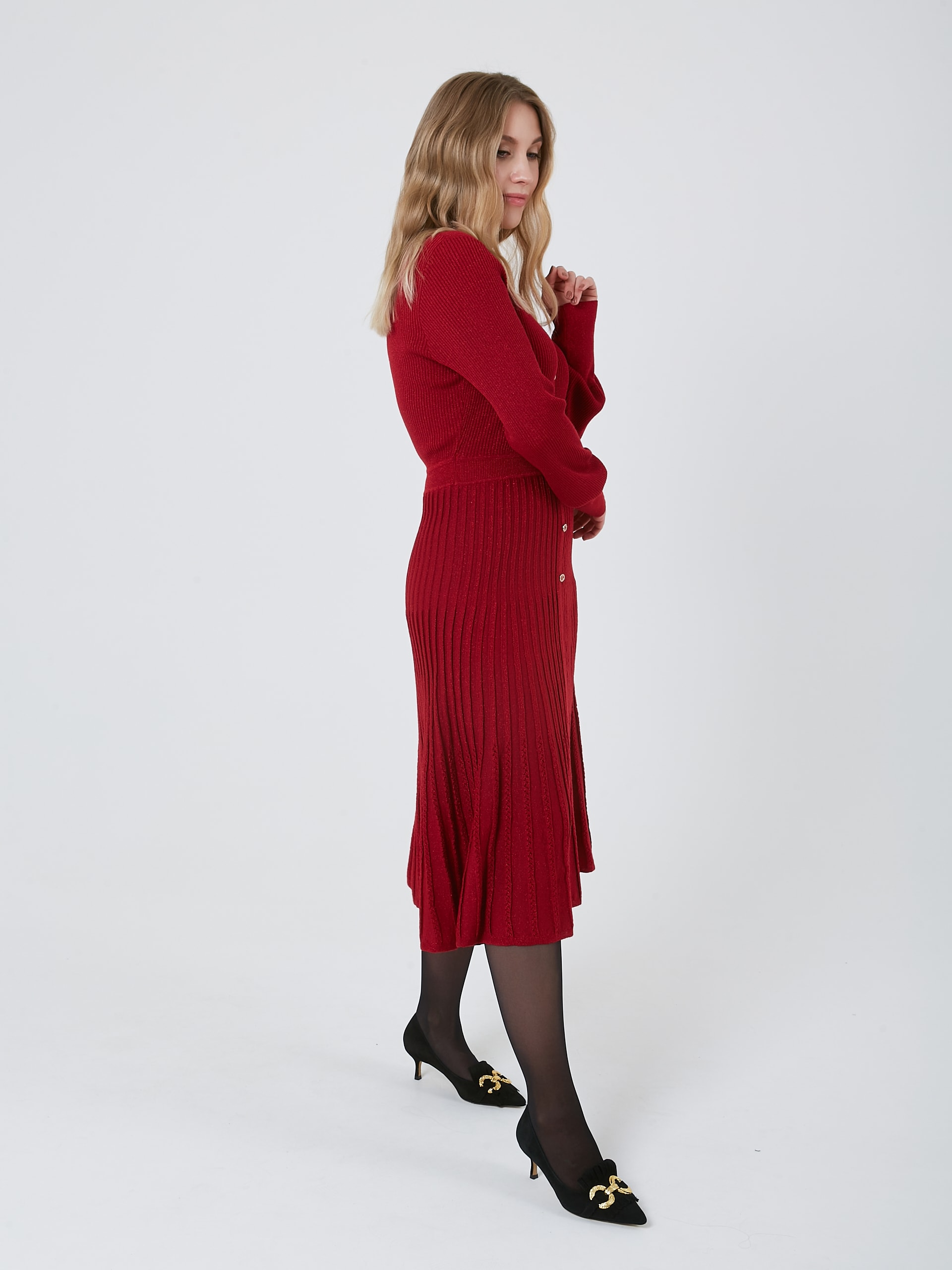 Женственное триколтажное платье карминового цвета - универсальная вещь для осенне-зимнего сезона. Осень-Зима'25/26. Капсула "Алые Паруса"
