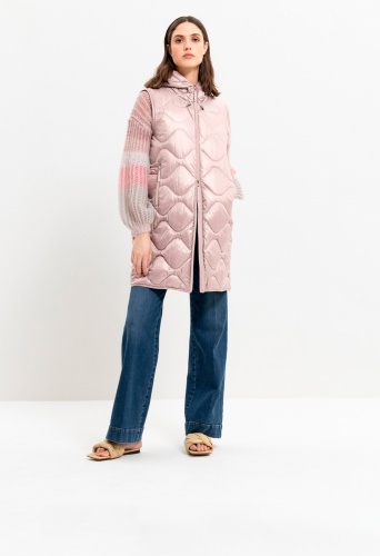 На сайте указаны российские размеры. Длинный жилет из нейлона для активного отдыха с эффектом легкого пуха с высокофункциональным утеплителем 3M Thinsulate™ без перьев и потайной двусторонней молнией спереди. Капюшон на подкладке регулируется шнурком. Модель ростом 178 см.