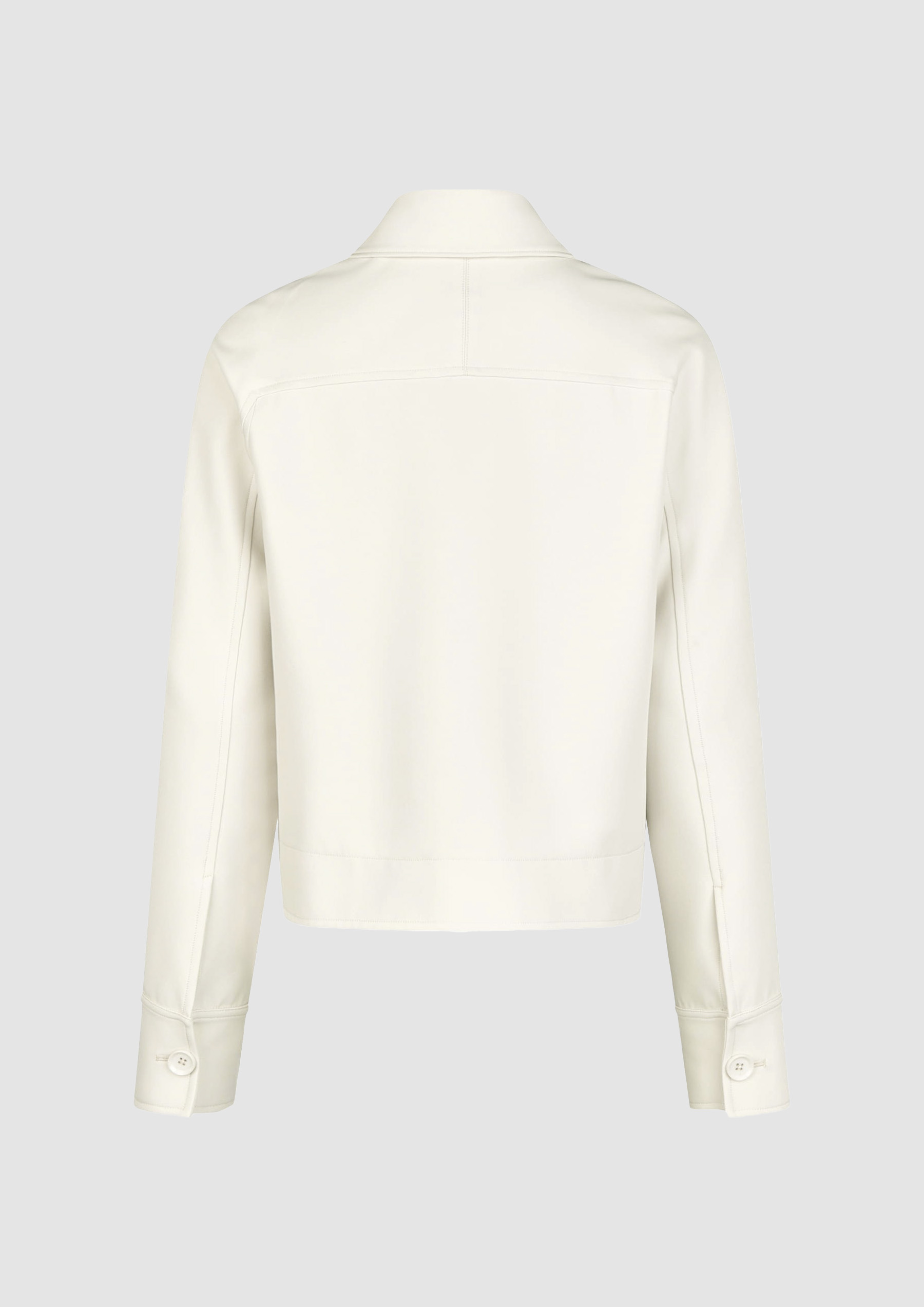 Элегантная куртка-рубашка из мягкой, легкой в уходе ткани. Воротник рубашки и накладные нагрудные карманы придают повседневному H-образному силуэту четкую структуру. Классическая планка на пуговицах и манжеты с разрезами подчеркивают прямой дизайн.