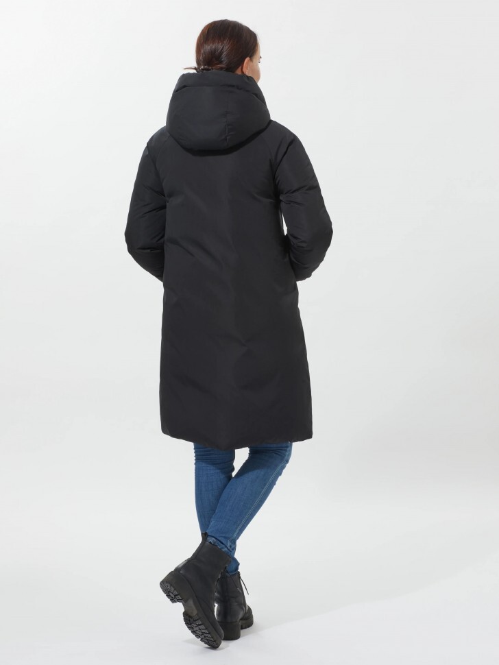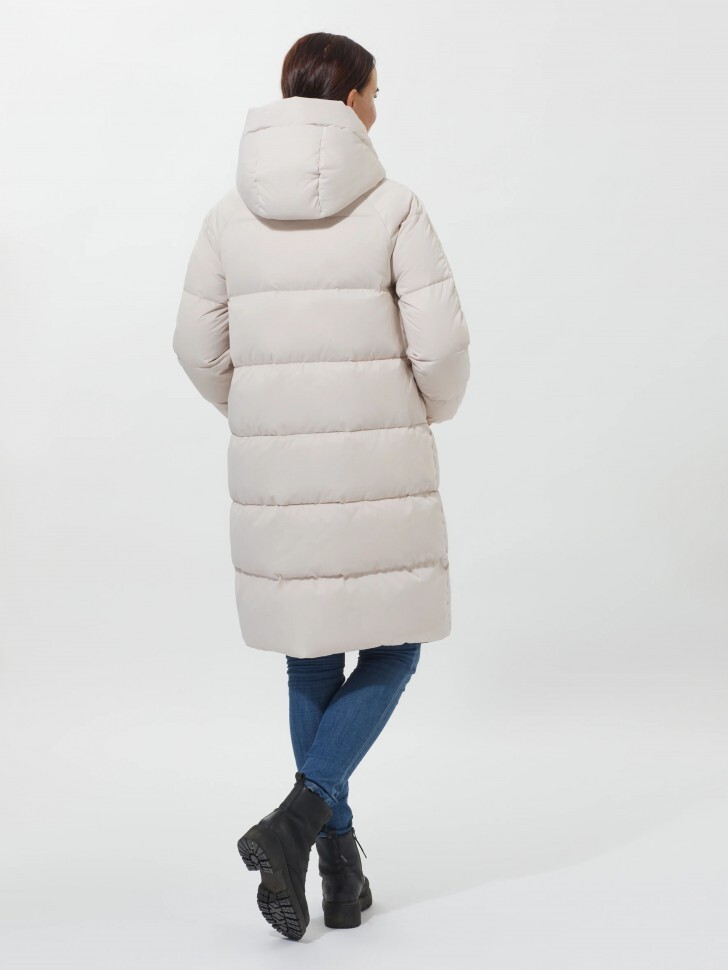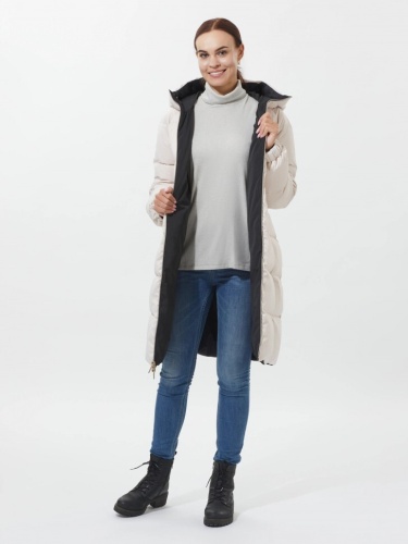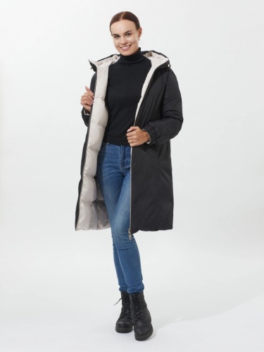 Пальто женское двустороннее прямого силуэта выполнено из водоотталкивающей ткани. Застёжка по борту на молнии, несъемный капюшон, карманы листочки. Утеплитель: 90% Натуральный, пух 10% перо.