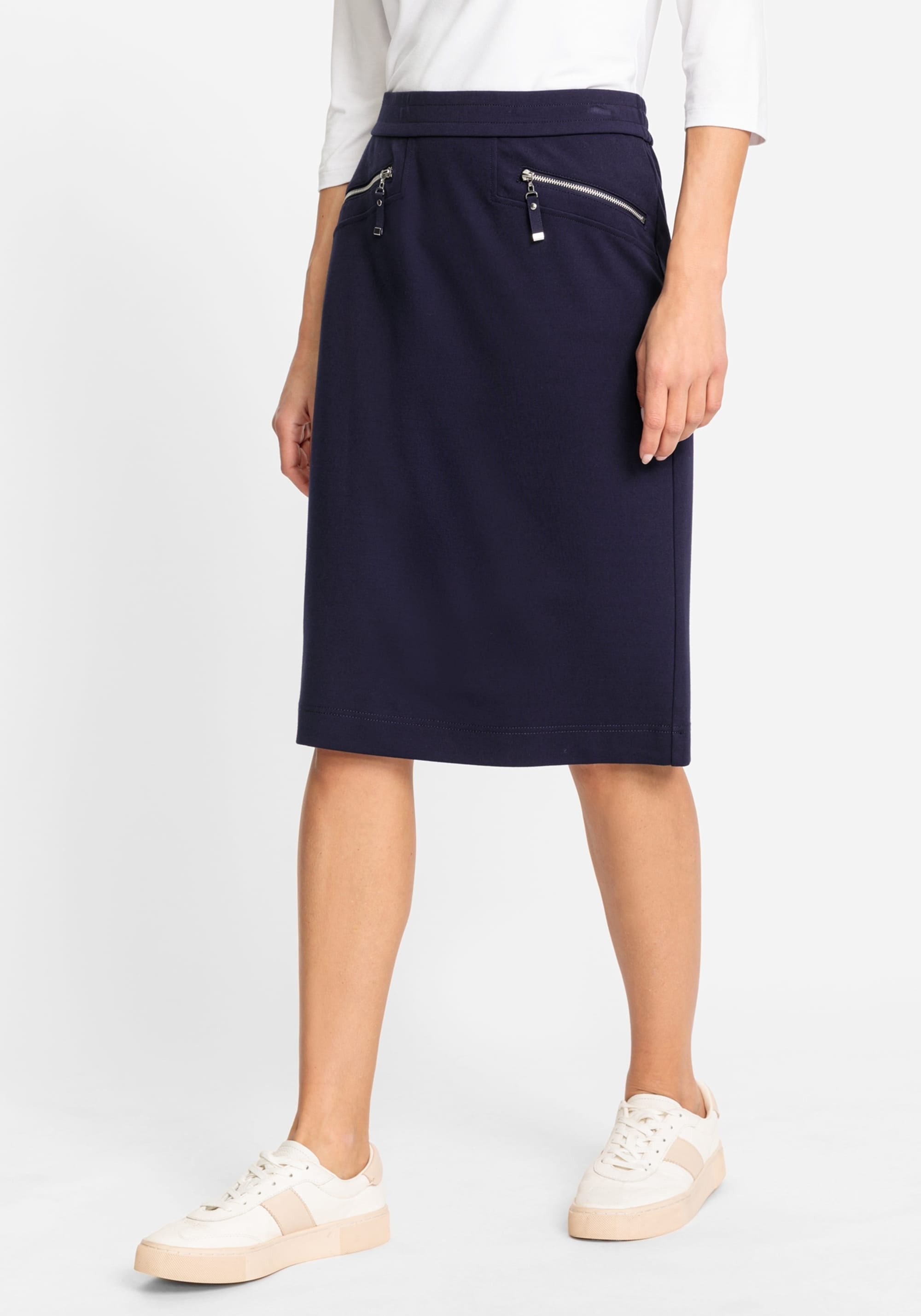 Модель прямой юбки, которая подойдет как для работы, так и для выходных. Эластичный пояс для удобства и два передних кармана на молнии контрастного цвета для дополнительного стиля. Удобная для растягивания конструкция обеспечивает комфорт в течение всего дня.