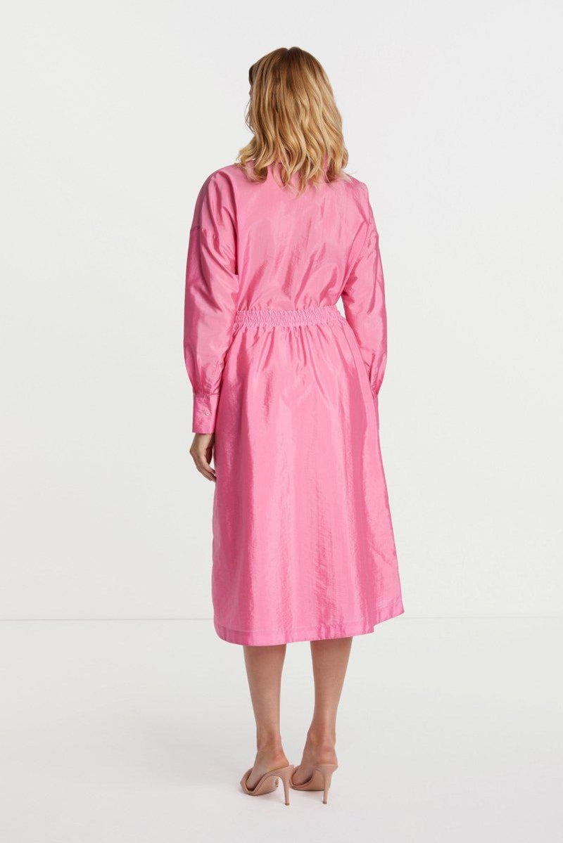 Широкая юбка длины миди из слегка блестящего несложного парашютного шелка — удобный повседневный образ. Боковые карманы и эластичный пояс гарантируют комфорт. Длина для размера 42: 78 см.