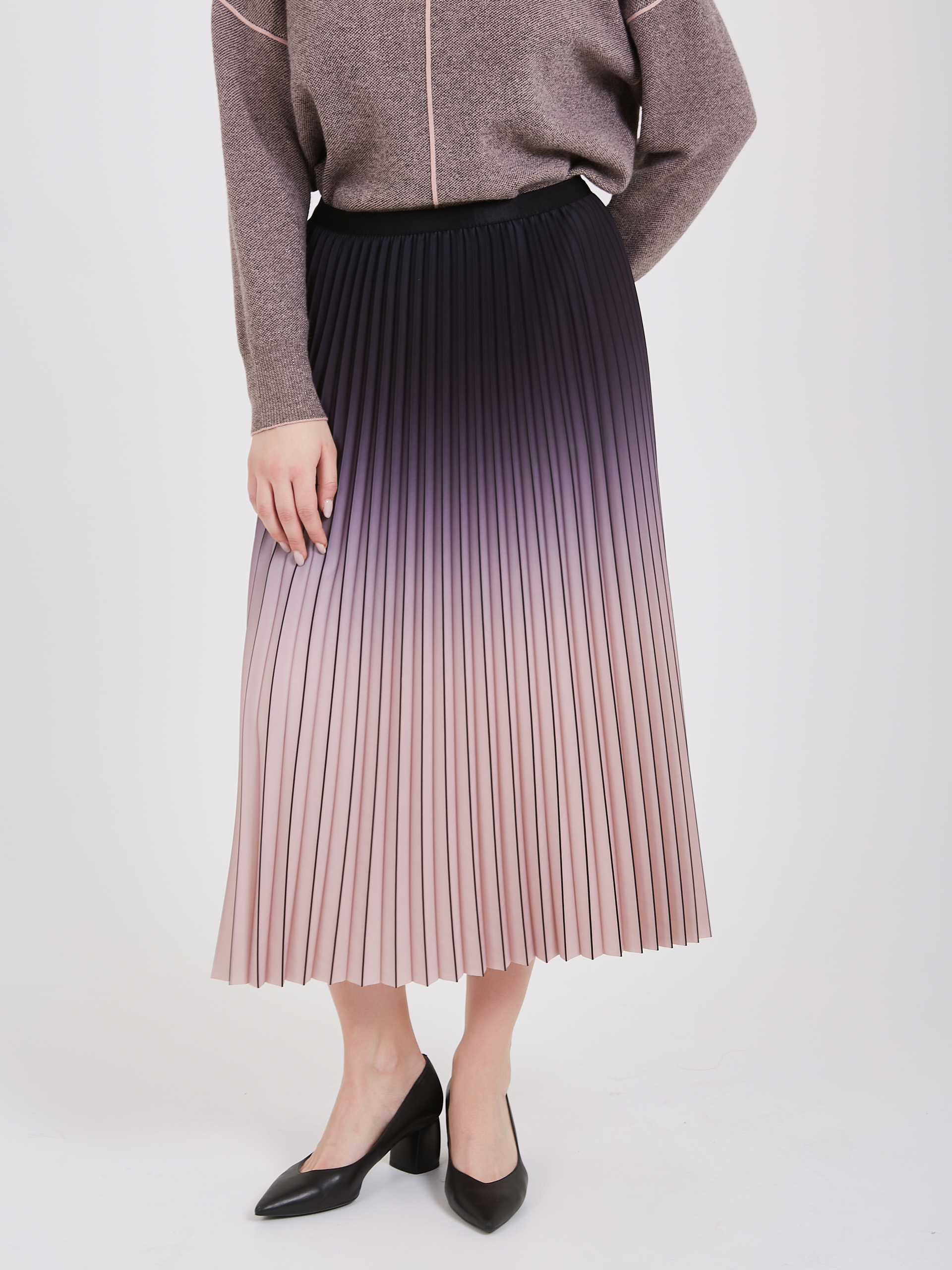 Эта юбка с градиентом от черного у талии до светло-розового к низу сочетает в себе элегантность и современность. Плиссировка с вертикальными складками добавляет объем и динамику, создавая стильный и универсальный образ. Осень-Зима'25/26. Капсула "Лиловый шар"