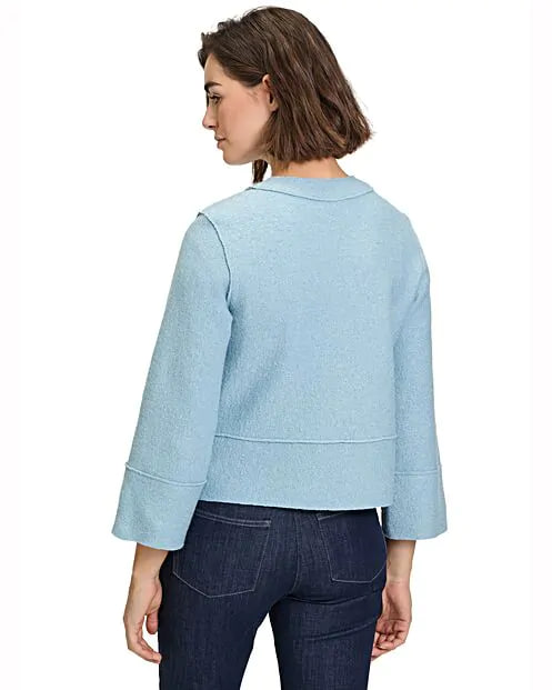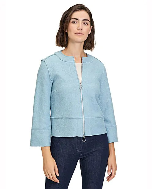 Жакет сочетает в себе элегантность и удобство. Рукава длиной три четверти придают образу особый шарм, а свободный крой позволяет чувствовать себя комфортно в любых ситуациях. Простота дизайна и минимализм деталей подчеркивают индивидуальность владельца. Застёгивающийся на молнию спереди, этот жакет станет незаменимым элементом гардероба, идеально подходящим для создания лёгких и стильных образов.